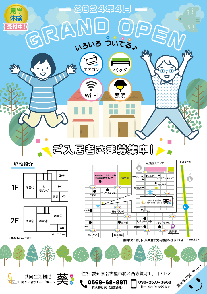 弊社株式会社葵は、2024年4月愛知県名古屋市北区で、障害者グループホーム(共同生活援助)を開設いたしました。