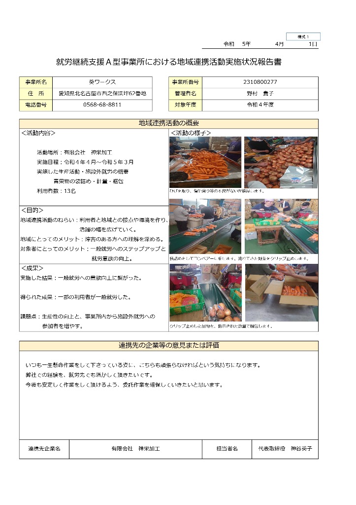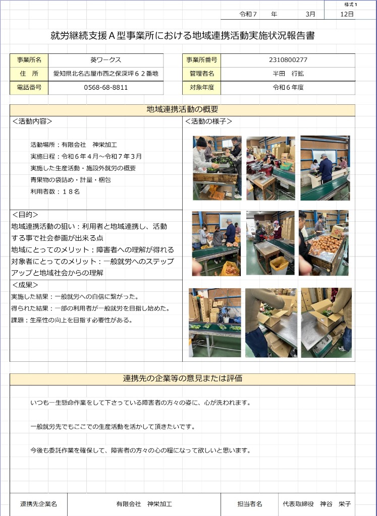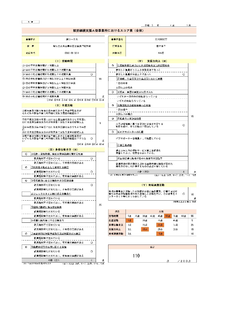 厚生労働大臣の定めるスコア告示の規定に基づき作成した、当事業所の就労継続支援A型事業所におけるスコア表を公表いたします。