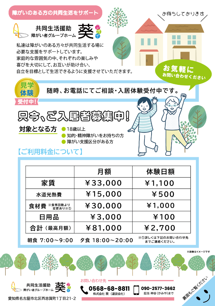 弊社株式会社葵は、2024年4月愛知県名古屋市北区で、障害者グループホーム(共同生活援助)を開設いたしました。